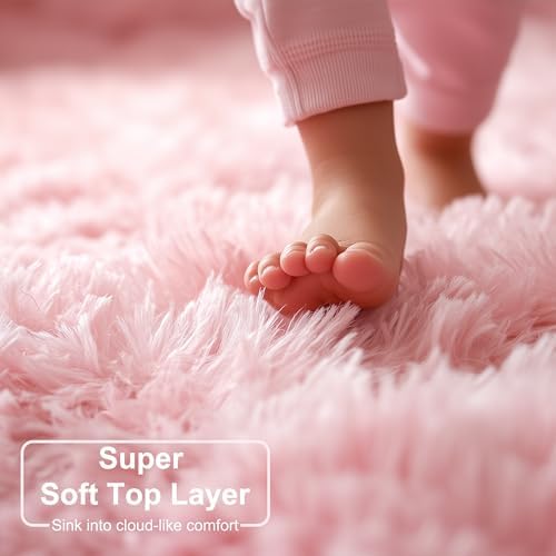 This adorable round rug is ideal for girls’ bedrooms, nurseries, classrooms, and dorm rooms where a pop of cute, preppy style is desired. The vibrant light pink color and fuzzy fur carpet create a warm and welcoming play zone that encourages kids to enjoy floor time comfortably. Its plush design adds both aesthetic charm and practical warmth to any room.