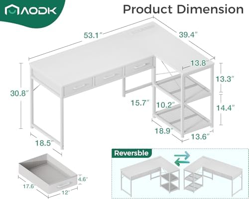 The AODK 53 inch L shaped computer desk is designed to enhance your home office or gaming setup. Equipped with 3 power outlets and 2 USB charging ports, this desk allows you to keep your electronic devices conveniently charged while you work or play. Say goodbye to cluttered cables and stay powered up without interrupting your flow.