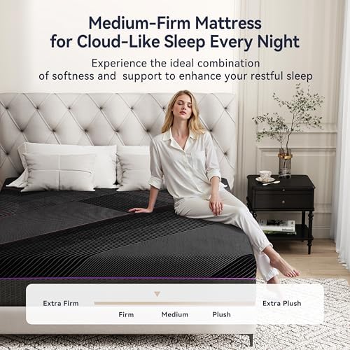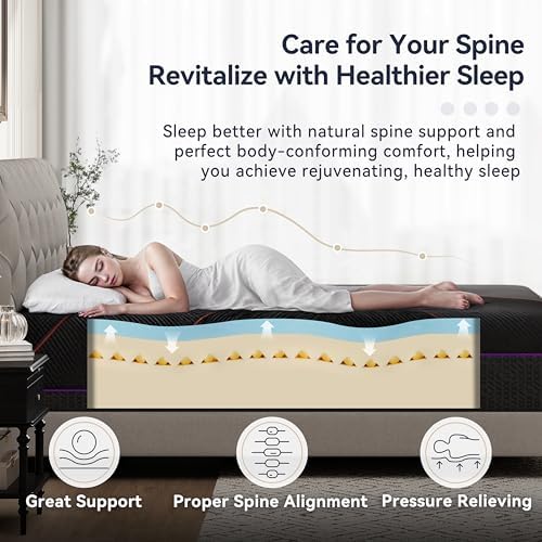 Designed with cooling gel memory foam and breathable charcoal foam, this mattress effectively regulates temperature and reduces moisture buildup to keep you comfortable throughout the night. Its medium feel provides excellent pressure relief by conforming to your body’s curves, supporting your head, back, and legs to reduce pain and fatigue. Furthermore, it absorbs movement vibrations, ensuring peaceful sleep even when sharing the bed.