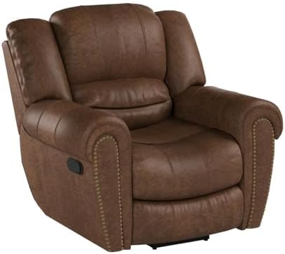 The CANMOV Leather Recliner Chair offers a perfect blend of traditional style and modern comfort. Upholstered with high-quality breathable faux leather, this manual recliner is designed for easy care and long-lasting durability. Its nut brown finish and brass nail accents add a timeless, luxurious feel to any living room, bedroom, or home theater space.