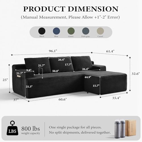 This sectional sofa features a versatile combination of two separate modules, enabling you to easily rearrange the setup to fit your unique room layout and lifestyle needs. Whether you want a cozy L-shaped arrangement or a spacious straight sofa, this modular design adapts effortlessly. Upholstered in soft-brushed, durable corduroy fabric, the couch adds a timeless elegance and endures daily wear with its high-quality material.