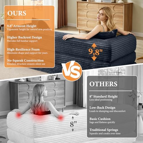 Wrapped in soft, breathable small-streak corduroy fabric and filled with high-density foam, this futon offers exceptional comfort with pressure relief and firm support. The fixed-shape frame ensures stability on various surfaces with a non-slip pad beneath, while the breathable upholstery maintains air circulation for lasting freshness. Designed oversized at 76 inch length, it provides ample lounging space and pulls out into a full sofa bed for versatile use without compromising style or function.