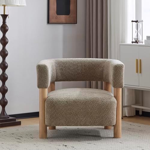 Constructed with a solid wood frame, the Carly accent chair supports up to 300 lbs, ensuring long-lasting durability and stability. The plush seat cushion and textured boucle fabric provide cozy comfort for reading or lounging. Its compact size fits nicely into various spaces, making it ideal for creating a relaxing corner or enhancing your lounge setup with style.