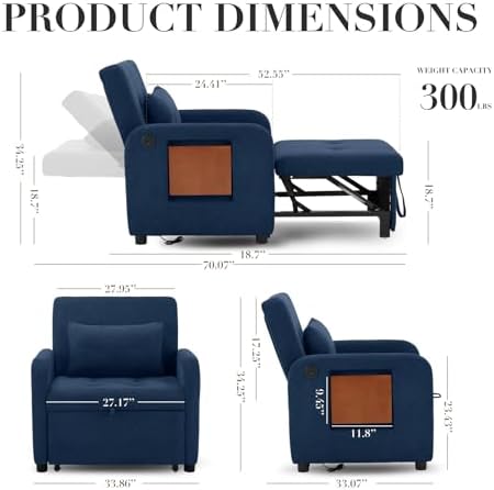 Constructed with a sturdy metal frame supporting up to 300 lbs, this sleeper sofa chair guarantees long-lasting durability and safe use. Whether for lounging, reading, or sleeping, this compact futon is a perfect addition to any modern living space seeking functionality and comfort.