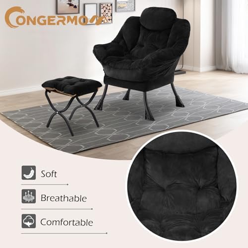 The Congermom Lazy Chair features a versatile 2-in-1 foldable ottoman in matching plush black fabric. Use it as a footrest while relaxing or reclining, or fold it away to save space when not in use. The ottoman supports up to 220 pounds, making it sturdy enough to serve as a small stool for changing shoes or as a play seat for children. Its detachable design simplifies cleaning and storage, perfect for keeping your space neat and organized.