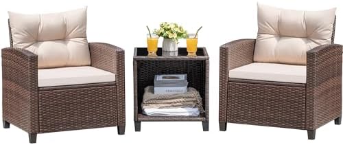 Upgrade your outdoor living area with the Devoko 3 Piece PE Rattan Patio Furniture Set, designed for maximum comfort and durability. Featuring wider seats and armrests along with padded back and seat cushions, this set ensures you enjoy relaxing moments without discomfort. Ideal for your porch, garden, poolside, or balcony, it combines aesthetic charm with practical use.