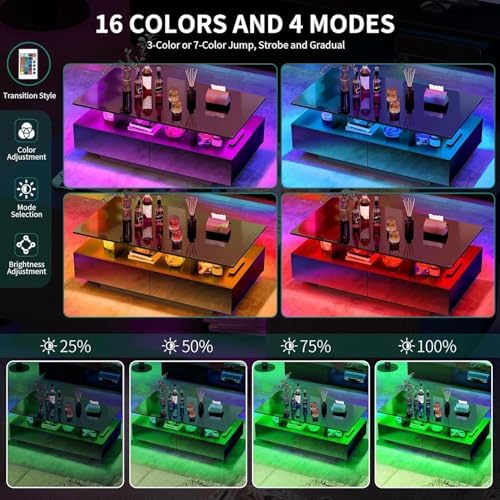 DWVO LED Coffee Table with Storage and 4 Drawers Black