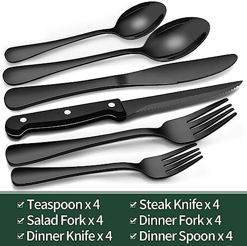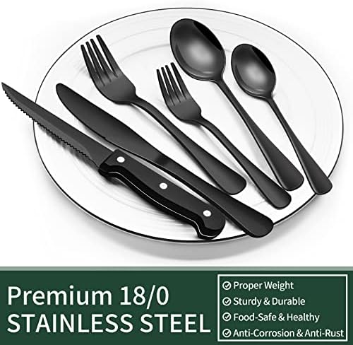 EWFEN 24-Piece Black Stainless Steel Silverware Set with Steak Knives