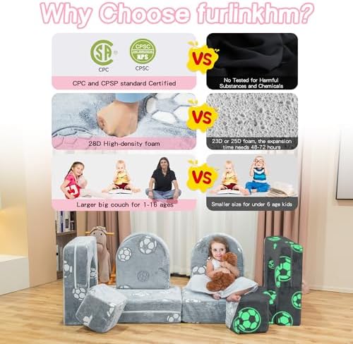 The furlinkhm Modular Kids Play Couch offers a quick expansion feature, rebounding to its original shape within 5 to 60 seconds thanks to its high-quality 28D resilient sponge. Unlike other modular couches requiring days to expand, this sofa is ready for hours of fun immediately without the need for dryers or sun exposure. Designed for lasting durability, it can maintain its shape and comfort for 2 to 3 years, supporting active play and creativity.