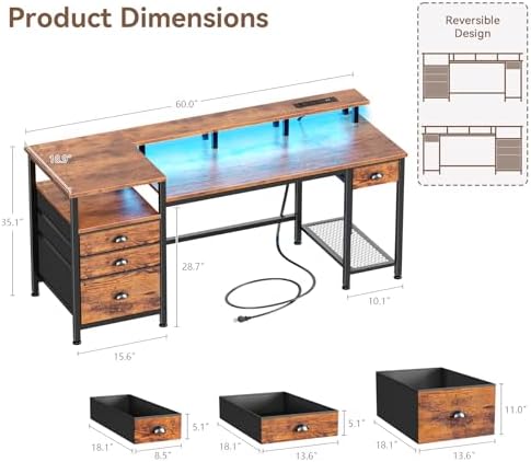 The reversible design allows you to position the storage cabinet on the left or right side to fit your space and workflow preferences. Measuring 60 inches wide by 19 inches deep and 35 inches high, this durable desk is easy to assemble with included tools and instructions, backed by responsive customer support for any issues.