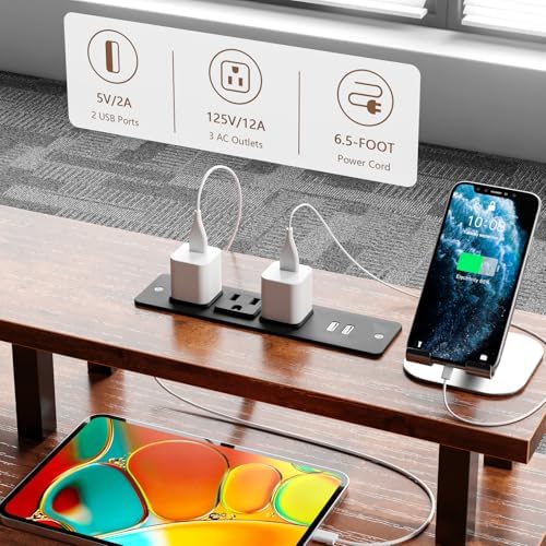 The Furologee 60 inch computer desk is designed for ultimate convenience, featuring an integrated charging station with 3 power outlets and 2 USB ports. This allows you to keep your phone, tablet, gaming gear, and other devices powered up swiftly, making your work or gaming sessions hassle-free and efficient.