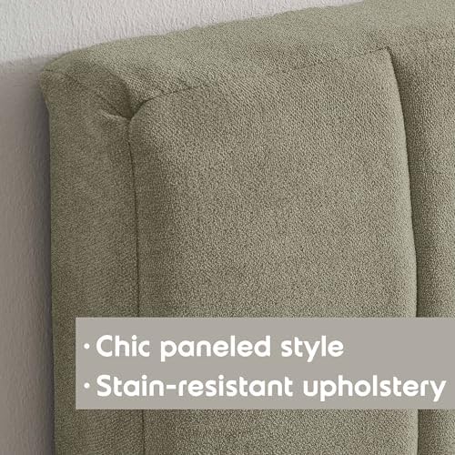 Upgrade your bedroom with the Hearth & Harbor Upholstered Queen Size Headboard in an elegant olive green shade. Designed for effortless wall mounting, this headboard comes with strong double-sided tape that requires no tools or hardware, making installation quick and hassle-free. Its chic channel-stitched panel design effortlessly enhances any modern or boho-inspired bedroom, adding a cozy and eclectic vibe to your personal space.