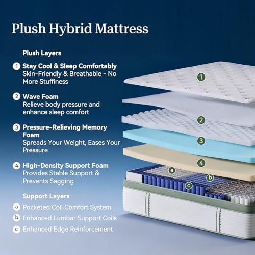 The HLMAF 12 inch queen hybrid mattress combines individually wrapped pocket springs with multiple layers of memory foam to deliver exceptional motion isolation and targeted body support. This innovative design offers a medium firm feel that gently cushions pressure points while maintaining precise spinal alignment, helping you wake up refreshed and free of discomfort. Ideal for side, back, and stomach sleepers, the breathable top layer promotes a cool and comfortable night’s rest.