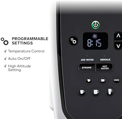 Designed with a large 75 ounce water reservoir, the Keurig K-Elite lets you brew several cups before needing a refill, saving you time during busy mornings. The removable reservoir and drip tray make upkeep simple while the quiet brew technology ensures a peaceful start to your day. Additional features like the hot water on demand button are perfect for quick soups or oatmeal, and maintenance reminders help you keep your machine running smoothly by notifying you when it’s time to descale.