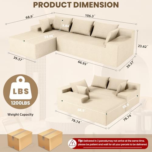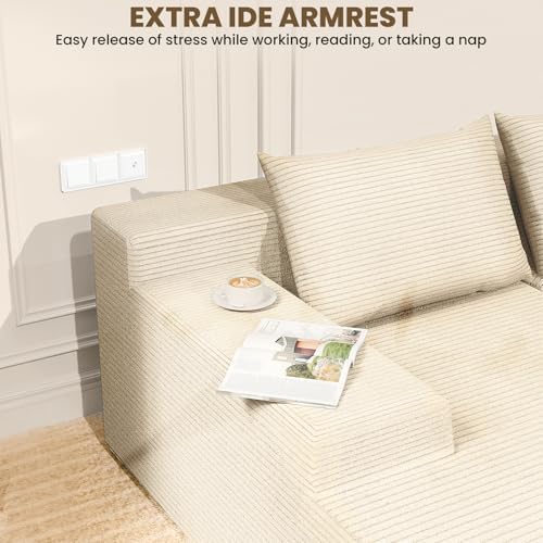 Upholstered in premium corduroy fabric, this sofa provides a soft, warm, and silky touch that adds sophistication and coziness to any room throughout the year. Designed for convenience, it requires no assembly — simply unpack, fluff each module, and enjoy instant comfort with the sofa regaining its full shape within 72 hours.