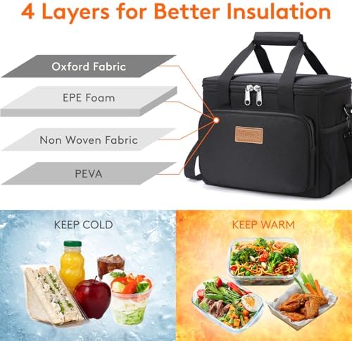 The Lifewit Medium Lunch Bag features advanced thermal insulation designed to keep your food and drinks cool or warm for over 4.5 hours. Crafted with food-grade PEVA foil interior lining and a 2 mm EPE foam layer, it ensures safe, direct contact with your meals while providing excellent protection against impacts and spills.