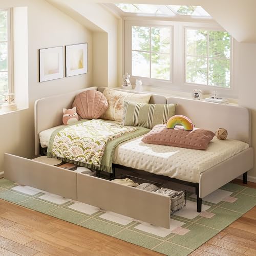 The LIKIMIO Twin Daybed is designed to maximize space in small apartments, guest rooms, or family areas. Its clever corner bed frame and adaptable layout offer a perfect fit for compact spaces that require multifunctional furniture without sacrificing style.