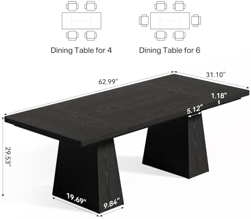 LITTLE TREE Wooden Dining Table for 4-6 People Black