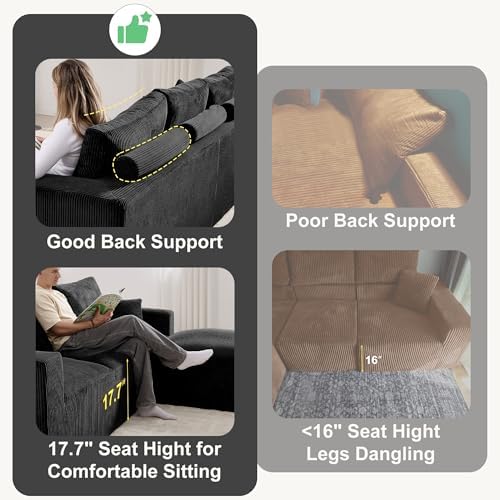 Discover the ultimate relaxation experience with the Myroyalsit 108 inch Modular Sectional Sofa. Designed with an all-foam construction that combines pressure-relieving springs and high-resilience foam, this sofa offers exceptional support and softness. Upholstered in premium PP cotton for a luxuriously soft feel, it features a raised seat height of 17.7 inches for optimal leg comfort, alongside an ergonomic cylindrical cushion on the backrest to enhance support during reading or TV time.