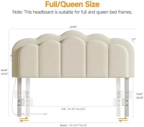 The ONBRILL upholstered headboard is crafted specifically for full and queen size bed frames, featuring a versatile height adjustment range from 44.4 inch to 53.1 inch. It offers four mounting positions with dual sets of mounting holes on each side, making it easy to attach and customize according to your preferred bed height for optimal comfort and style.