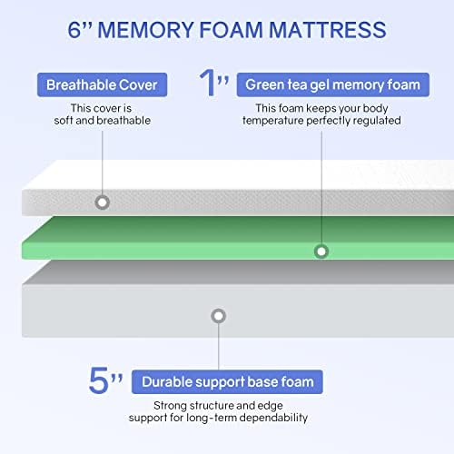The PayLessHere 6 inch twin green tea cooling gel memory foam mattress is designed to provide medium-firm support that distributes your body weight evenly for optimal pressure relief. Infused with a high-quality green tea solution, this mattress offers natural odor control and a fresh sleeping environment. Its gel memory foam helps regulate temperature by keeping you cool throughout the night, making it perfect for hot sleepers and those who prioritize comfort and hygiene.