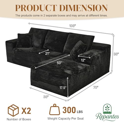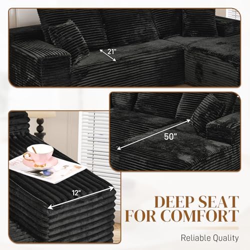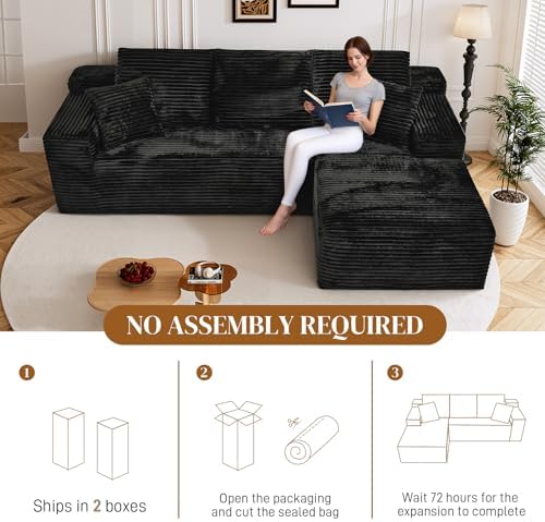 Enjoy deep seating with 21 inch high-resilience memory foam cushions that provide superior support for lounging, reading, or movie nights. The upgraded soft corduroy fabric has a vertical velvet texture that is wrinkle-resistant, skin-friendly, and wear-resistant, bringing both warmth and elegance to any room. Plus, with no assembly required, the sofa ships in vacuum-compressed boxes ready to expand fully within 48 to 72 hours.