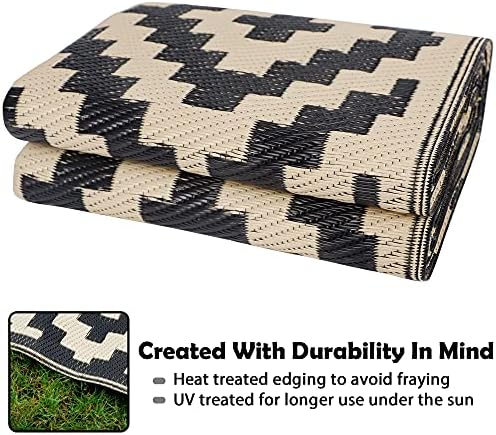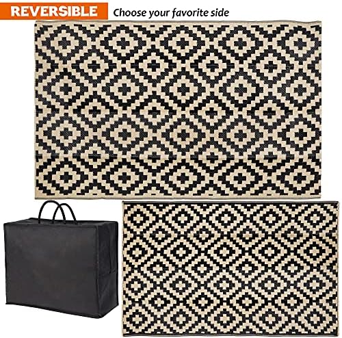 Designed with outdoor enthusiasts in mind, this reversible plastic rug cleans easily with just water and a quick sweep. It folds compactly into the included carrying bag, perfect for picnics, camping trips, beach days, and RV adventures. A UV-stabilized coating protects against fading and sun damage, ensuring long-lasting color and durability through all seasons.