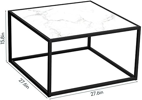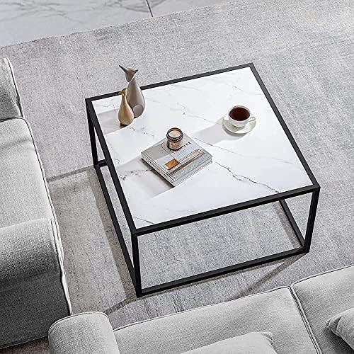 Featuring a white faux marble top paired with a black matte metal frame, this small square coffee table boasts clean lines and a sleek silhouette that complements any contemporary decor. Its minimalist style ensures it never goes out of fashion.