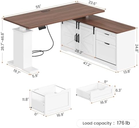 Experience the perfect blend of functionality and style with the SEDETA 55 inch L Shaped Adjustable Standing Desk. Designed to maximize corner spaces, this farmhouse-inspired workstation is ideal for home offices, gaming setups, or creative environments. Featuring a sturdy wooden construction with a textured, thickened tabletop and elegant sliding barn door, it brings sophistication and durability to your workspace. The L-shaped layout expands your surface area and offers ample room to accommodate multiple monitors, documents, and accessories.