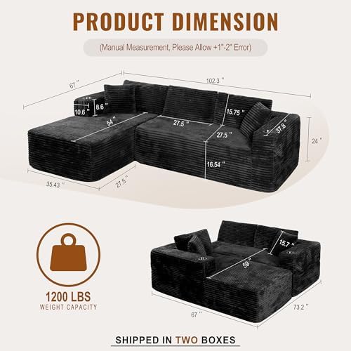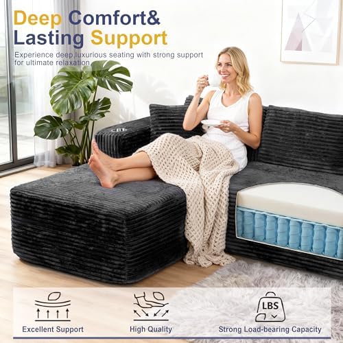 Wrapped in breathable, wrinkle-resistant corduroy fabric, this memory foam couch adds both warmth and sophisticated style to any living room. The fabric’s durability ensures your sofa looks inviting and fresh for years to come, while the modular design allows easy rearrangement to fit your space perfectly. Shipping comes in two boxes with zero assembly needed — just unpack, fluff the cushions, and enjoy a personalized, cozy seating experience.