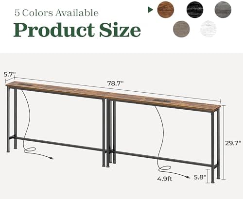 The SUPERJARE 78.8 inch Narrow Console Table is a perfect solution for filling small gaps between your sectional sofa and walls or window sills. Crafted by seamlessly joining two 39.4 inch sofa tables, this slim 5.7 inch deep couch table offers a stylish and space-saving way to organize your living room. Its rustic brown finish adds warmth and charm, complementing various decor styles.