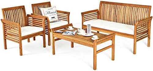 This Tangkula 4 piece outdoor sofa set is crafted from premium acacia wood, known for its strength and resistance to cracking or deforming. The solid wood frame is reinforced with high-quality screws, ensuring sturdy support with a large weight capacity suitable for families and gatherings. This makes the set a reliable and long-lasting addition to your outdoor living space.