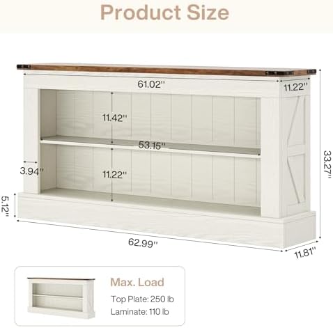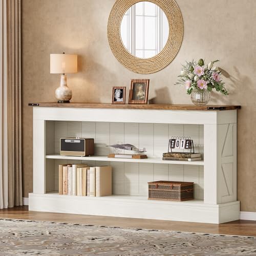 Elevate your living space with the Tribesigns 63 inch Console Table, designed to bring a warm, vintage farmhouse look to your entryway, hallway, or living room. Featuring a charming white finish paired with natural wood grain, this narrow console table blends seamlessly with various decor styles while adding a cozy touch to your home.