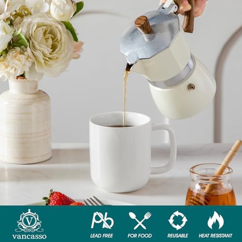 Elevate your coffee ritual with the vancasso porcelain coffee mugs set. Each mug holds 12 ounce (practical 10 ounce) capacity, perfect for savoring espresso-based drinks like lattes, cappuccinos, or a cozy cup of hot tea or cocoa. Designed for those who appreciate the ideal portion size, these mugs ensure every sip is enjoyable whether it’s morning, afternoon, or evening.