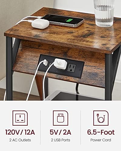 Keep your devices powered up and within reach with the VASAGLE End Table set, featuring two AC outlets and two USB ports on each table. With long 6.5 foot cords and thoughtfully spaced outlets, you can charge multiple devices simultaneously without clutter or inconvenience. Ideal for living rooms, bedrooms, or as bedside nightstands.