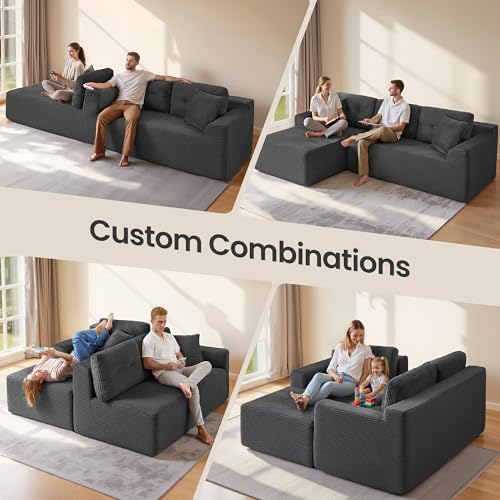 The VASAGLE boneless couch brings a no-assembly solution to your living space. Simply unpack, fluff, and enjoy as the modular sectional sofa expands to its full 108.3 inch size within 72 hours. Upholstered in plush corduroy fabric, this sofa is designed for warmth and softness while providing durable support with high-density foam cushions that maintain comfort sit after sit.