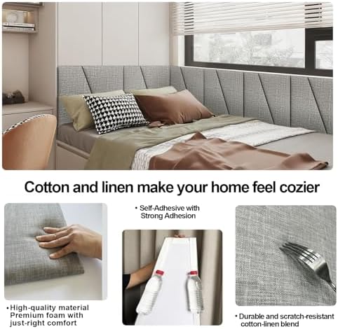Enhance your bedroom, living room, or dorm with the Visit the peaudny peel and stick headboard for queen beds. Covered in soft, skin-friendly linen fabric and filled with high-density, high-elasticity sponge, these panels provide a moderate hardness that offers an excellent backrest experience. They deliver comfort alongside effective anti-collision protection, making your space cozy and safe.
