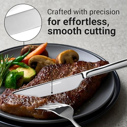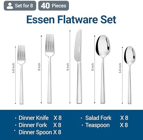The Visit the Stahlsmith Essen 40-Piece Flatware Set combines durability, elegance, and practicality in one modern cutlery collection. Crafted from high-quality 18/10 stainless steel, this silverware set resists rust and wear, ensuring long-lasting use whether you are enjoying everyday meals or hosting special occasions. Its sleek mirror finish and contemporary design add a polished look to your dining table, elevating both casual breakfasts and elegant dinners.