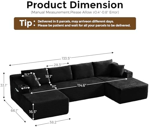 • Design: 133 inch oversized U-shaped modular sectional sofa