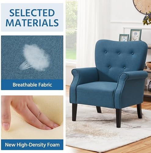 This armchair offers a roomy 20 inch wide by 19.3 inch deep seat crafted with skin-friendly polyester fabric and soft foam. Supported by robust metal zig zag springs, the cushion maintains perfect elasticity for long-lasting comfort. Despite its lightweight build of just 43 pounds, it can hold up to 300 pounds, providing sturdy support and relaxation. Whether you’re reading, working, or socializing, this chair ensures you stay comfortable and stylish.
