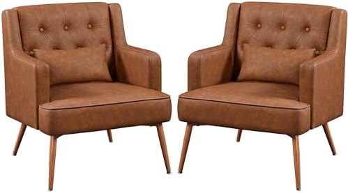 Enhance your living room, bedroom, or reading nook with the Yaheetech Mid Century PU Leather Accent Chair set. This set of two chairs offers a cozy sitting experience with generously sized seats and wide slanted backs that provide ultimate comfort for relaxation and relaxation. Designed with a rich brown PU leather surface, these chairs bring both style and easy maintenance with water-resistant and easy-to-clean material.