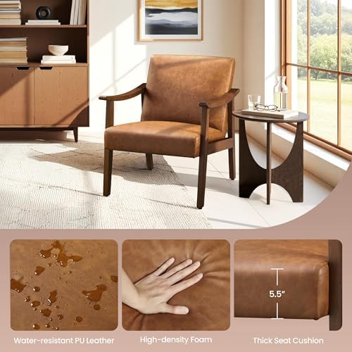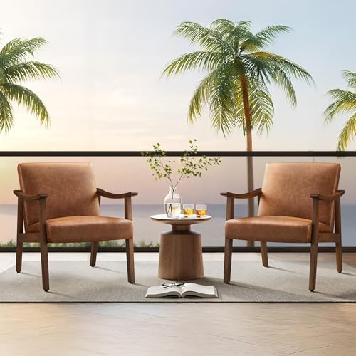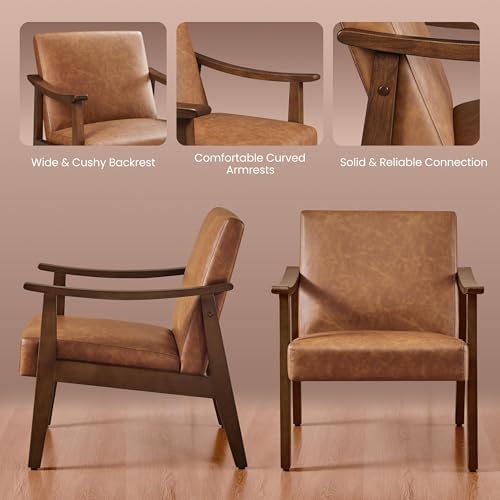Enhance your living space with this set of two Yaheetech PU Leather Accent Chairs featuring a chic mid-century modern design. Crafted with solid wood legs and a retro brown finish, these armchairs bring a timeless aesthetic to any room. The slightly curved armrests combined with a low-profile seat silhouette offer a perfect blend of style and comfort that complements living rooms, bedrooms, or waiting areas.