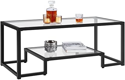 The Yaheetech Tempered Glass Coffee Table combines sleek design with practical features to enhance your living room, office, or balcony. Featuring a durable metal frame and crystal-clear tempered glass tabletop and shelf, this coffee table brings a minimalist yet elegant touch to your interior decor. The classic black finish adds sophistication and easily complements various styles, creating a relaxed and inviting atmosphere.