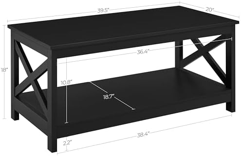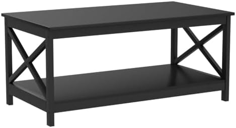 Yaheetech Wood 2-Tier Black Coffee Table with Storage Shelf