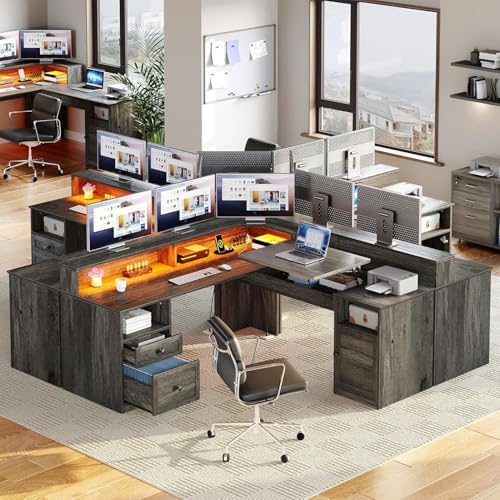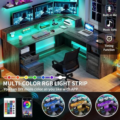 YITAHOME L Shaped 60 inch Desk with Power Outlets & LED Lights