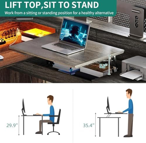 • Features: RGB LED light strips, lift top for sit-to-stand use
