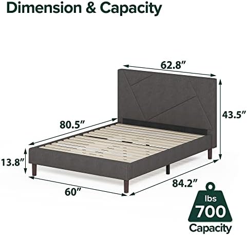 The Zinus Judy Upholstered Platform Bed Frame brings a fresh, modern twist to traditional bedroom aesthetics with its asymmetrical geometric upholstered headboard and soft grey foam padding. Crafted with an interior steel framework, this bed frame provides a sturdy and reliable foundation designed to last. It supports various mattress types including latex, memory foam, and spring, eliminating the need for a box spring and enhancing mattress longevity.